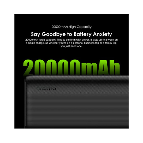 Stay powered wherever life takes you with the ORAIMO Traveler 4 20000mAh Power Bank, a reliable high-capacity solution designed for everyday charging needs. With its massive 20,000mAh battery, this power bank keeps your smartphone, tablet, earbuds, and other USB devices running for days without worrying about low battery.